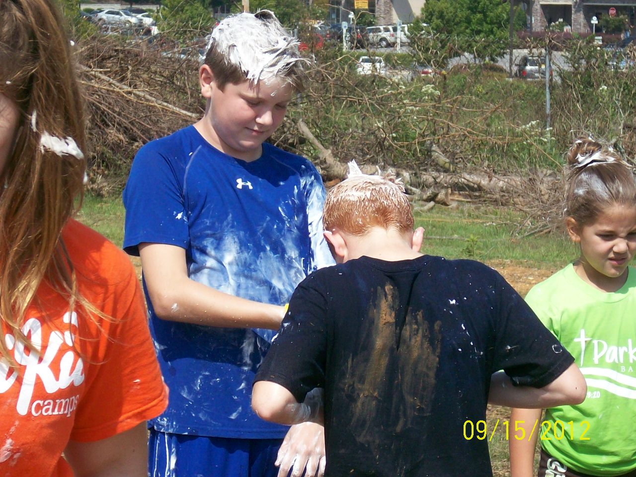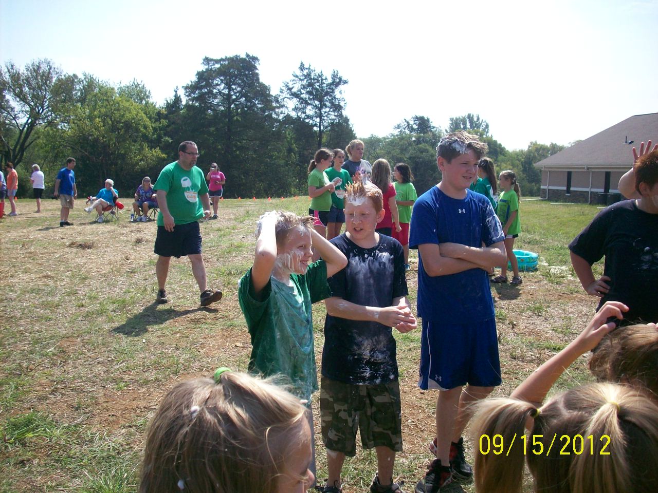 The objective is to let the children have some messy fun plus bond with the church family too. None of our grandchildren attend our church but they visit often enough that I felt it was appropriate for them to be part of the experience. The day was temperature perfect. We decided to stay for the morning. I am glad we did.