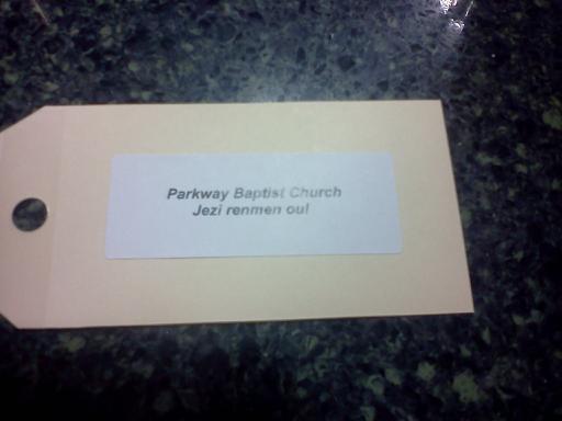 Walter donated some tags left over from a project he had completed. Our church Ministry Assistant added a sticker that said, "Parkway Baptist Church Jezi renmen ou!" This is Haitian Creole for Jesus Loves You. Now every time the mat is used, the message can be read by the child and reinforced that they are loved.