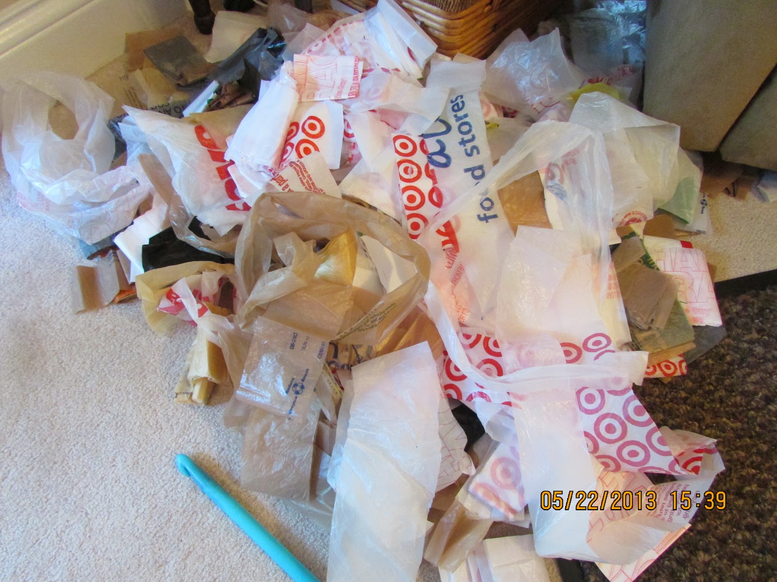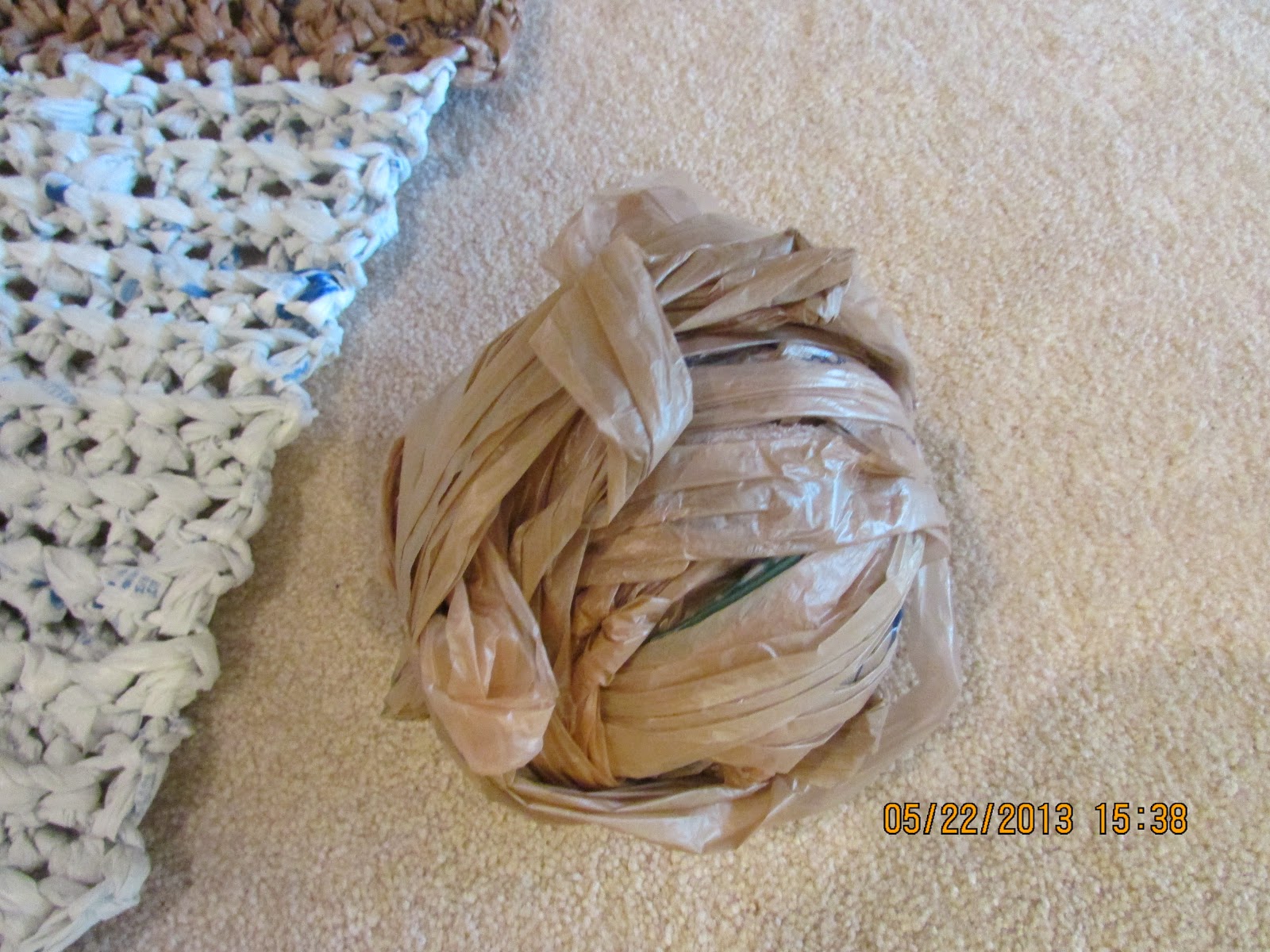 I did a little of everything. I folded bags, cut them into strips, tied them together and crocheted them into a mat. I used a large crochet hook.