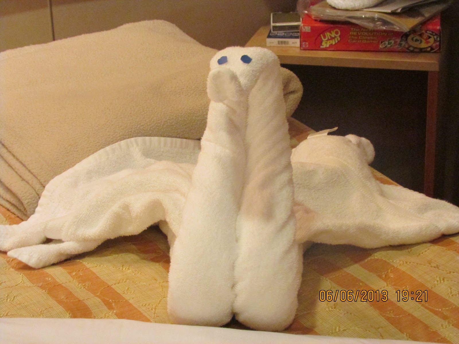 The towel animals were fun to receive. The rooms were always cleaned when we returned each day and the animals gave us something to look forward to. The others stayed in rooms across the hall, so they usually had a different towel animal than we had.
