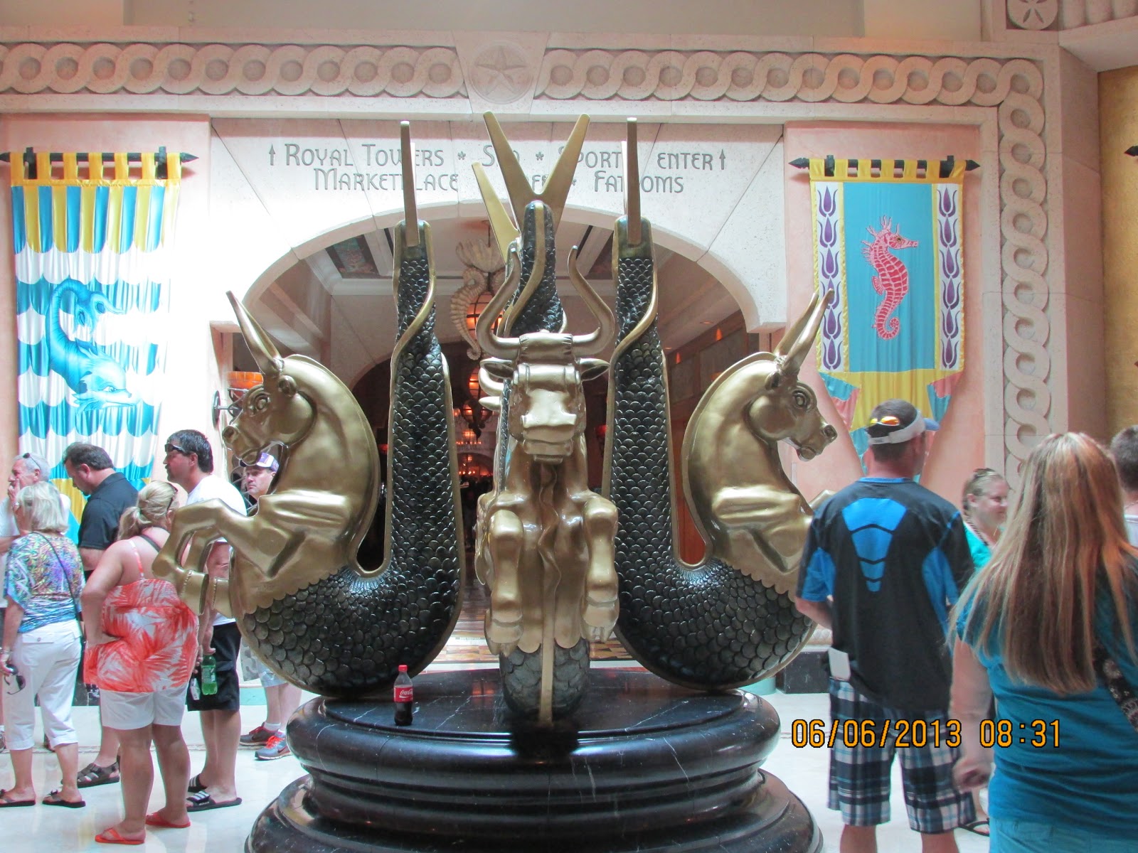 The tanks were large and contained hundreds of fish. The layout mimicked ancient streets that contained art and artifacts. We saw manna rays, starfish, conchs and seahorses, to name a few.